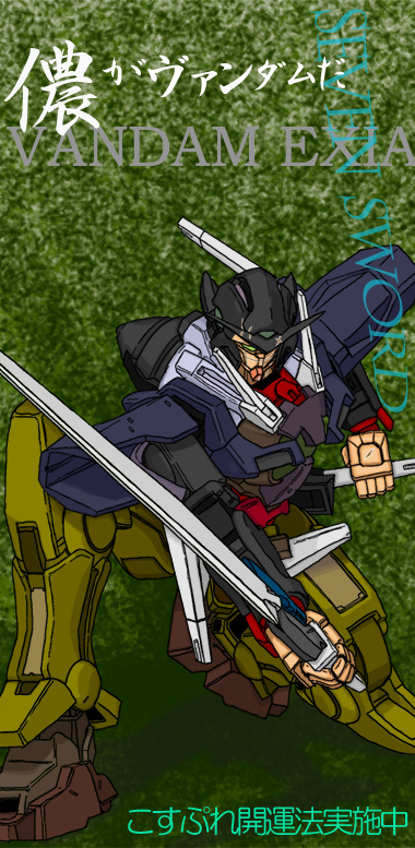 ぶっちゃけヴァンカラーのただのエクシアです。機動戦士ヴァンダムは前からやろうと思ってたネタの一つでしたが、それじゃあヴァンダミングアクションの人を連想するなと躊躇してたんですが、あまいいさんにヴァンダムやられたんでもういいやとw