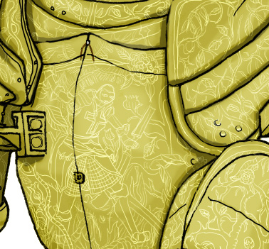 鎧自体のデザインにしたがった模様を入れたかったけど、それは写真じゃ細かすぎて見えず、模様の元ネタになる鎧はヴァンには合わないので却下。ヴァンに一番合う鎧はさらに資料が無く、結局は現在の形となってます。